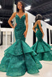 Elevate your prom night into a transcendent experience with Elysian. a spellbinding mermaid-style gown that redefines elegance. Crafted from luxurious fabric. it showcases a stunning silhouette with its layered design and elegant lace applique details. This dress is a perfect choice for both evening dresses and formal dresses. with its rich hunter green color adds a touch of sophistication while the v-neck adds a flattering neckline. Perfect for any formal event. this dress will have you feeling confident and stylish.