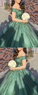 green ball gown prom dresses lace appliques off the shoulder S13881
