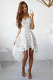 This stunning A-line High Low Straps Simple White Lace Homecoming/Party Dress is the perfect choice for your special day. The short. high-low design. and delicate lace fabric create a look that will have all eyes on you. Perfect for any homecoming or party. you will look dazzling and feel great in this dress.
