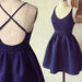 The Homecoming Dress Dark Navy Criss-Cross Straps Short Prom Dress PD370 gives you a classic and timeless look. with navy blue colouring and strappy criss-cross details. Perfect for any formal occasion. this simple and modest dress is guaranteed to make you stand out from the crowd.