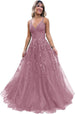 Sparkly Tulle Lace Applique Prom Dresses Long for Women.A Line Ball Gown.Women's Tulle Spaghetti Strap V Neck Formal Evening Party Gown