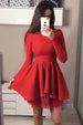This Long Sleeve Homecoming Dresses Off the Shoulder Short Prom Dress is the perfect addition to your formal wardrobe. Featuring long sleeves. Off the Shoulder design. and an array of colors like black and red. you can look stunning and sophisticated at your next special occasion.