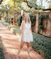 Hold the measuring tape at your hollow while a friend pulls it down to the length you want your dress.