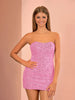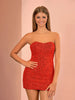Enhance your elegance and confidence Champagne Sheath Fitted Strapless Sequined Short Homecoming Dress. Designed with precision. it accentuates the beauty of your shoulders and neck. while the sequin material adds a touch of glamour. Perfect for parties. dances. or formal events. this dress will make you shine like a star.