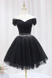 Look your best with this Off The Shoulder Black Homecoming Dress Tulle Short Prom Dress. Crafted from a luxurious tulle material. this off-the-shoulder design is complemented with unique beading details and available in three distinct colors for a truly special look. Make a statement on your homecoming night with this stylish mini dress.
