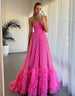 Step into the spotlight with the Rachael Long Prom Dress. This hot pink beauty features an enchanting sweetheart neckline that highlights your decolletage while maintaining elegance. It is crafted from soft tulle that drapes beautifully. creating a whimsical and flowing effect that is perfect for twirling on the dance floor. The tiered design adds a playful dimension. accentuated by delicate ruffles and pleats that bring texture and movement to the dress. The A-line silhouette flatters a variety of body types. offering both comfort and style. The lace-up back provides an adjustable fit. ensuring you feel secure and confident throughout your special evening. Whether you're attending a prom. gala. or any formal event. the Rachael dress is the perfect choice for making a statement.