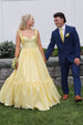 Introducing Kamilah. an exquisite red prom dress that radiates sophistication and poise. This luxurious taffeta gown features an A-line silhouette. making it a timeless and flattering choice. The vibrant color of Kamilah symbolizes love. courage. and confidence. An ideal choice for both evening dresses and formal dresses. with its floor-length design and sweep train add a touch of drama. It's complete with a classic sweetheart neckline. spaghetti straps with bow detail. and a lace-up back for a customized fit. To add to the dress's allure. Kamilah is finished with tiered ruffles that cascade gracefully down the fabric. From proms to galas. Kamilah is the perfect way to make a statement and showcase your individual style.