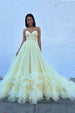 Make a bold entrance with this enchanting red A-line gown. a perfect blend of romance and glamour. Crafted from ethereal tulle fabric. this dress features a classic strapless neckline that beautifully highlights your décolletage. Romy dress is a perfect choice for both evening dresses and formal dresses. with its A-line silhouette gracefully cascades into a sweep train. creating an effortlessly elegant flow. Intricate appliques add a touch of artistry. while delicate ruffles bring playful movement to the design. The lace-up back ensures a flawless fit. offering both comfort and charm. Whether it's a gala. prom. or a formal evening event. this gown guarantees you'll turn heads all night long.