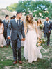 See Through Beaded Floral Lace Long Sleeve Boho Wedding Dresses.MW269.