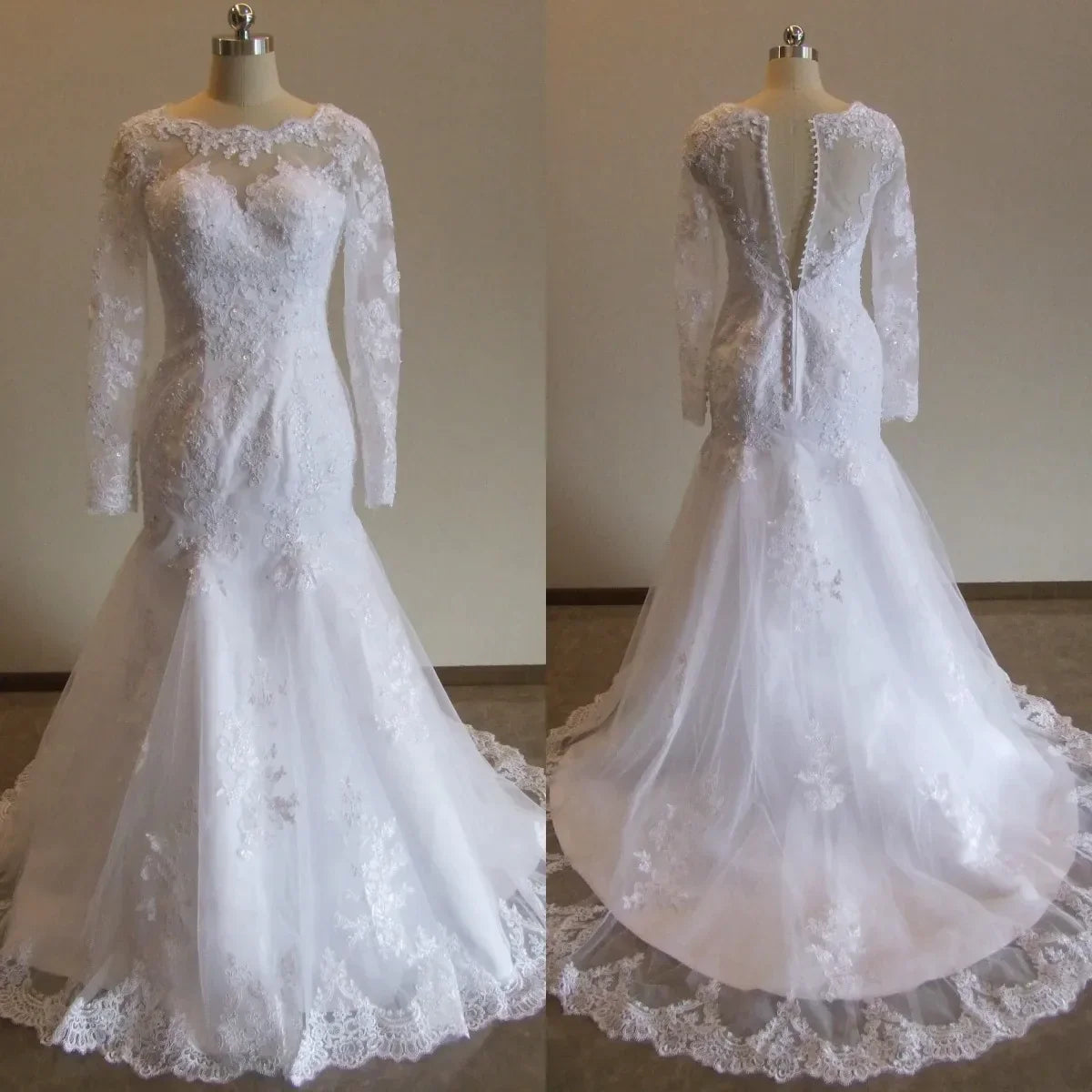 Sexy Illusion Mermaid Wedding Dresses Lace Appliques Robe De Mariée Wedding Bride Gowns Court Train Backless Vestido De Noiva