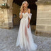 Sexy Off Shoulder Wedding Dresses Bohemian Tulle Elegant Women's Side Split A-line Lace Applique Beach Bridal Dress Sleeveless