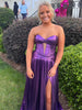 Sileas | Turquoise Sweetheart Metallic Pleated Long Formal Dress With Slit
