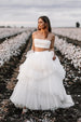 Discover elegance and simplicity with our Simple Two Piece Wedding Dress. Designed for country and boho weddings. this dress offers a modern twist on traditional wedding attire. With its two-piece design. it provides versatility and comfort. Make a statement on your special day with our layered and effortless dress.