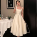 Hold the measuring tape at your hollow while a friend pulls it down to the length you want your dress.