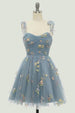Look amazing in this Spaghetti Straps Sleeveless A Line Tulle Floral Short Homecoming Dress. Perfect for high school homecoming. its floral motif and luxurious tulle fabric make it suitable for all formal occasions. Show off your style with this stunning and comfortable dress.