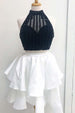 This two piece red satin homecoming dress is perfect for any special occasion. Designed with high neck and beading details. this dress is sure to turn heads. Both comfortable and fashionable. it makes for a flattering silhouette.