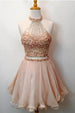 This two pieces high neck beading short homecoming dress is the perfect blend of style and comfort. Featuring two piece construction with champagne fabric. sequins detailing. and a high neck. it makes a great choice for special occasions. Make a statement with this chic and sophisticated style.