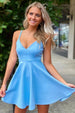 This V Neck Short Purple Homecoming Dress is perfect for your special event. It features a crossed back and mini silhouette for a stylish look. Its bright purple hue and simple design make it the ideal choice for any homecoming or party occasion.