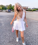 Hold the measuring tape at your hollow while a friend pulls it down to the length you want your dress.