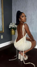 Hold the measuring tape at your hollow while a friend pulls it down to the length you want your dress.