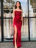 Make a stunning statement in the Yana Burgundy Strapless Satin Mermaid Prom Dress. This dress is crafted from luxurious satin. the dramatic mermaid silhouette sculpting the body before gracefully flaring out at the hem. The rich burgundy color adds depth and sophistication. perfect for making a lasting impression at prom or any formal occasion. The strapless design highlights your shoulders and collarbones. creating an elegant and timeless look. while the sleeveless cut keeps things chic and contemporary. The intricate appliques adorn the bodice. adding texture and a touch of artistry to this already show-stopping dress. A daring split at the front provides a hint of allure. allowing you to move freely while exuding confidence. With a lace-up back for a customizable. perfect fit. the Yana dress promises both comfort and elegance. Whether you're attending a grand event or a memorable evening. this exquisite dress is sure to make you feel like the center of attention.