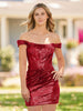 Revel in the spotlight Sheath Off-the-Shoulder Sequin Homecoming Dress. This short-mini length sensation encapsulates the very essence of chic allure. allowing you to shine like the star you are. Its off-the-shoulder neckline playfully teases while the eye-catching sequin fabric glistens in dark green. fuchsia. royal blue. or red. The sheath style flatters your figure. complemented by a corset bodice that offers an extra touch of sophistication. Pleats add depth. crafting a multidimensional masterpiece. Shop dress Zinnia now!