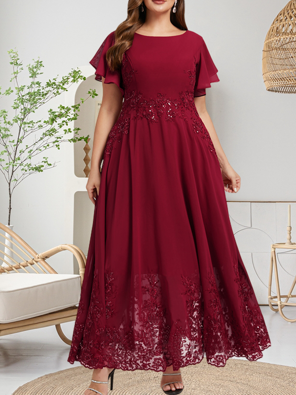Straps & Sleeves: Short Sleeve. Flutter Sleeve
