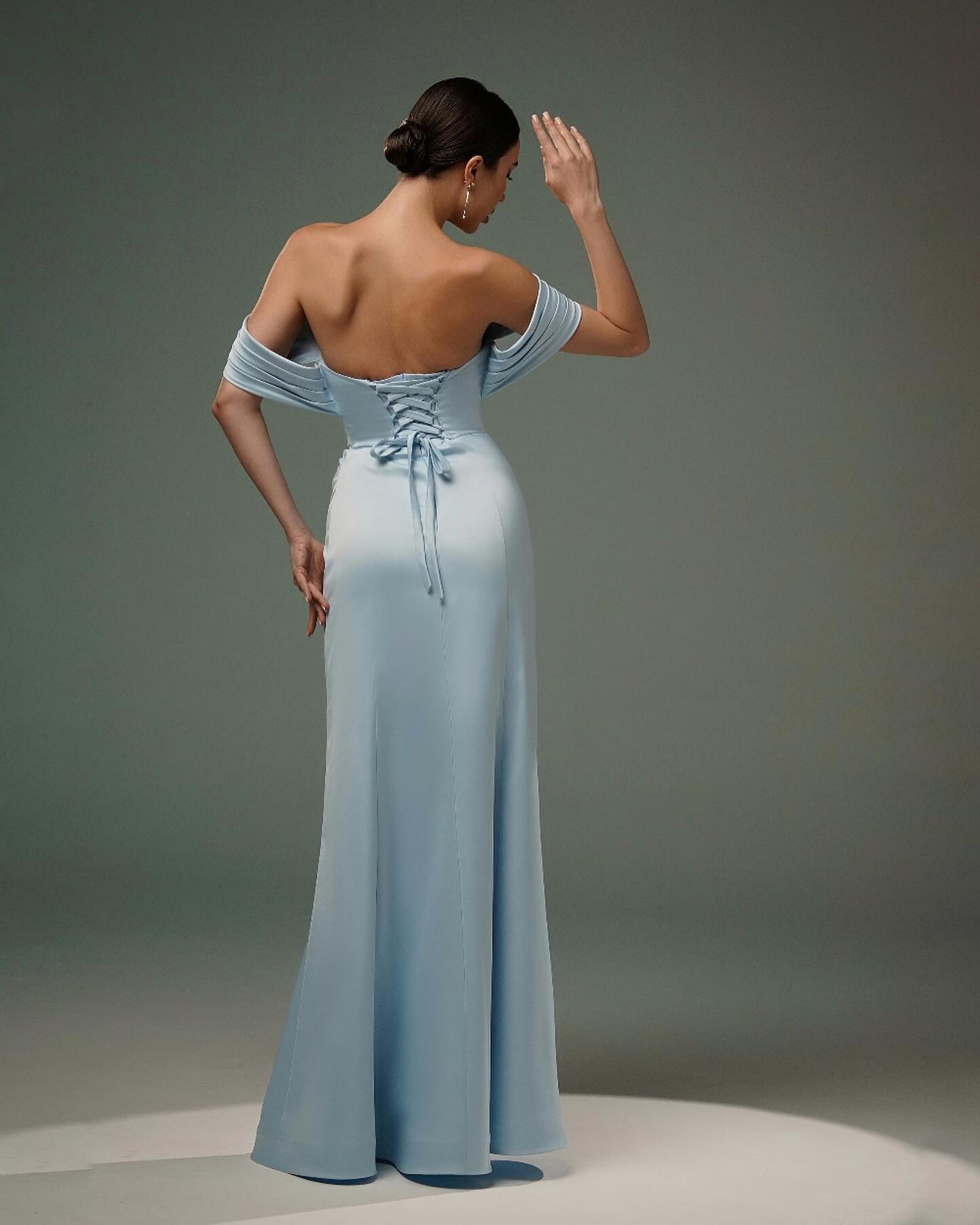 This Amazing A-Line Satin Prom Dress boasts an elegant off-the-shoulder design and a flattering A-line silhouette. The sleeveless design and split front add a touch of sophistication. making it perfect for prom or any formal occasion. Made with high-quality satin material. this dress is both comfortable and beautiful.