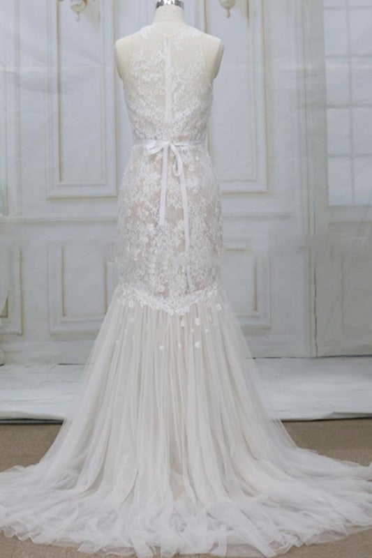 product name: Amazing Appliques Tulle Mermaid Wedding Dress