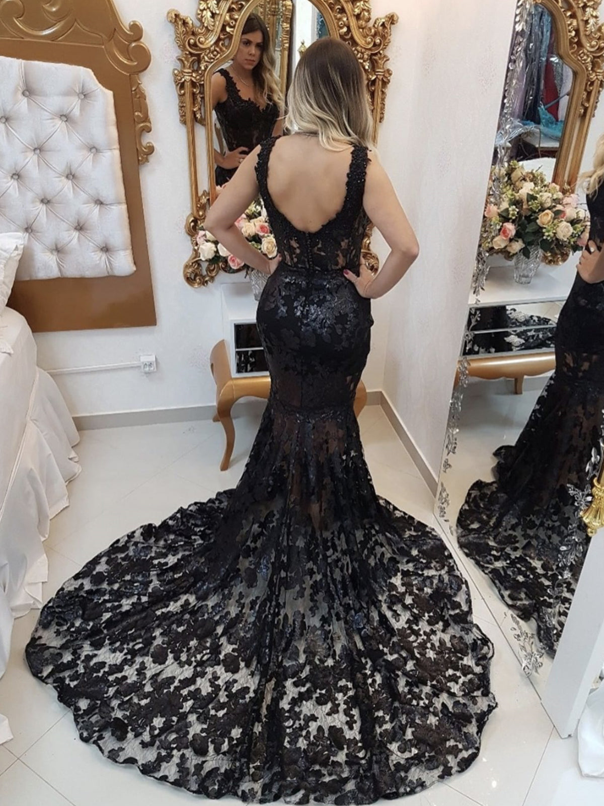 This elegant Black Long Mermaid Sweetheart Lace Formal Evening Prom Dress features a sweetheart neckline and intricate lace detailing. Designed to flatter your figure. this dress is perfect for any formal occasion. Feel confident and sophisticated in this stunning dress.
