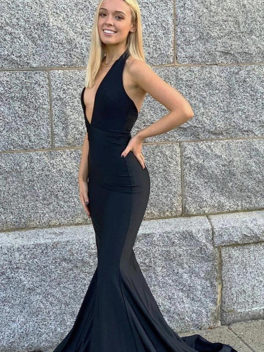 Expertly crafted from luxurious satin. this stunning Black Long Mermaid V-neck dress is perfect for formal occasions like graduation or prom. The backless design adds a touch of allure. while the fitted mermaid silhouette flatters your curves. Make a statement with this elegant and stylish dress.