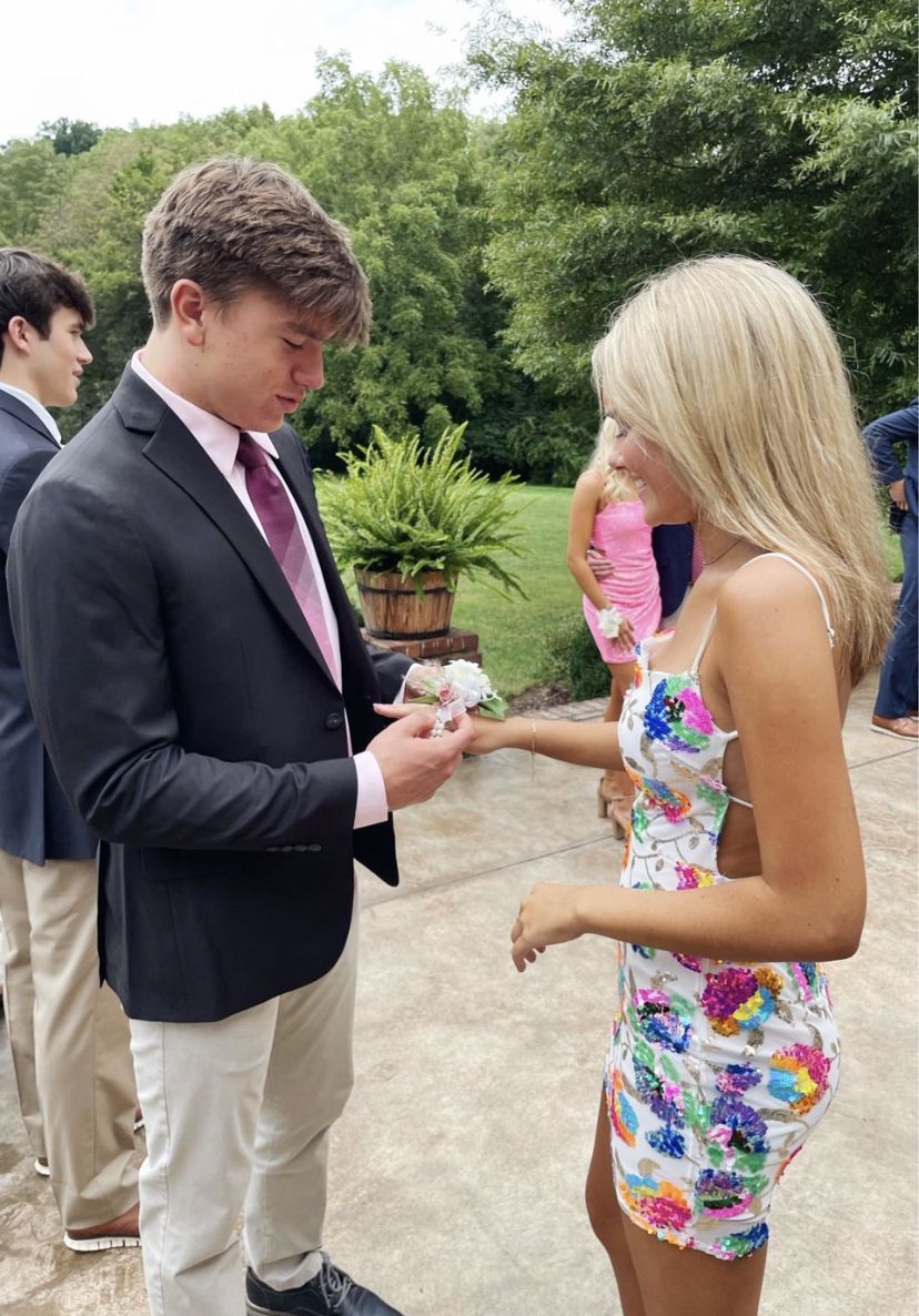 Hold the measuring tape at your hollow while a friend pulls it down to the length you want your dress.
