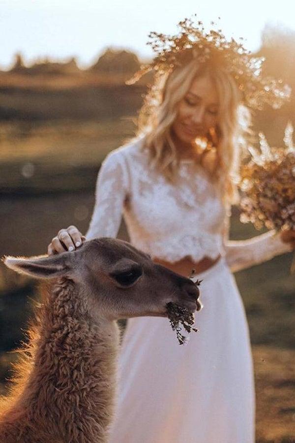 Look beautiful on your special day in WD553. This elegant two-piece A-Line wedding dress is made from delicate chiffon and features long sleeves. perfect for celebrating your special day. With premium fabrics and attention to detail. you'll look like a princess.