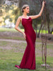 Introducing the Long Spaghetti Cowl Neck Burgundy Satin Mermaid Prom Dress/Evening Dress from KissProm. an epitome of timeless elegance and modern allure. The lustrous burgundy satin fabric gracefully drapes. reflecting light and adding a dash of intrigue to your look. The cowl neck and spaghetti straps frame the colletage beautifully. ensuring you make a lasting impression. Turning the dress around reveals an enchanting open-back detail that adds a dash of sensuality to the elegant gown. This captivating feature ensures you look stunning from every angle. making this dress the perfect choice for any formal event and your prom night.