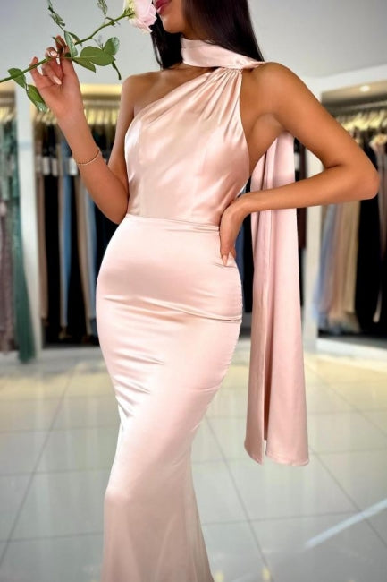 This elegant pink long simple mermaid one shoulder sleeveless satin prom dress is a timeless classic. Made with high-quality satin fabric. this dress will provide a flattering fit and comfortable feel all night. The mermaid silhouette will accentuate your figure. making you look and feel stunning. Perfect for proms. weddings. and special occasions.
