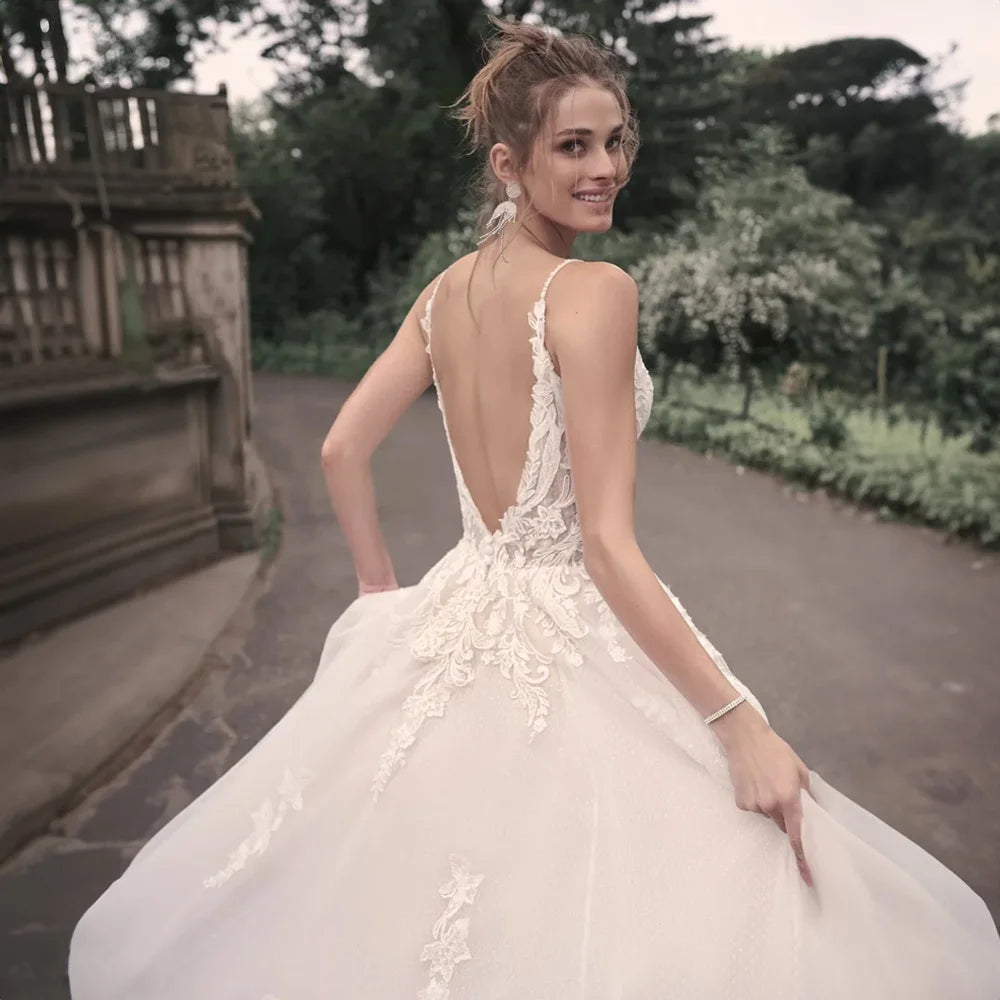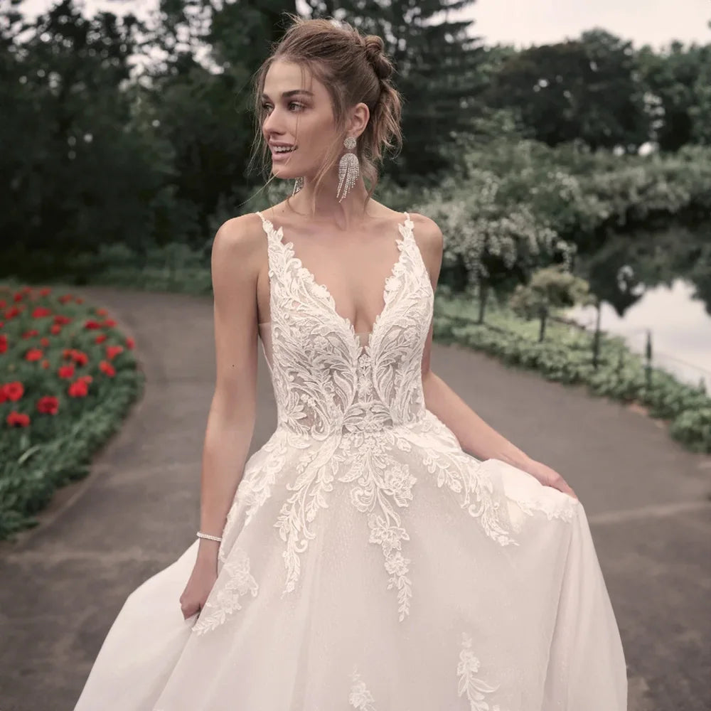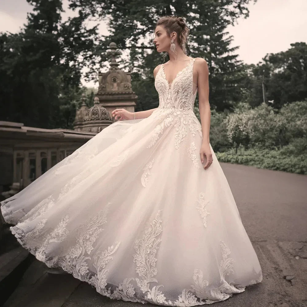 Elegant Wedding Dresses For Woman Popular Summer A-line V-Neck Sleeveless Appliques Open Back Vestidos De Novia