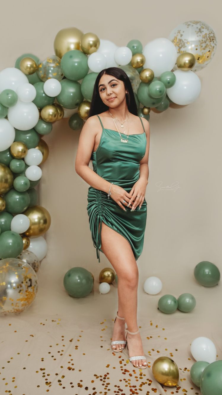 Hold the measuring tape at your hollow while a friend pulls it down to the length you want your dress.