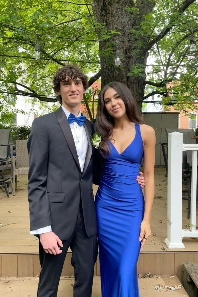 Hold the measuring tape at your hollow while a friend pulls it down to the length you want your dress.