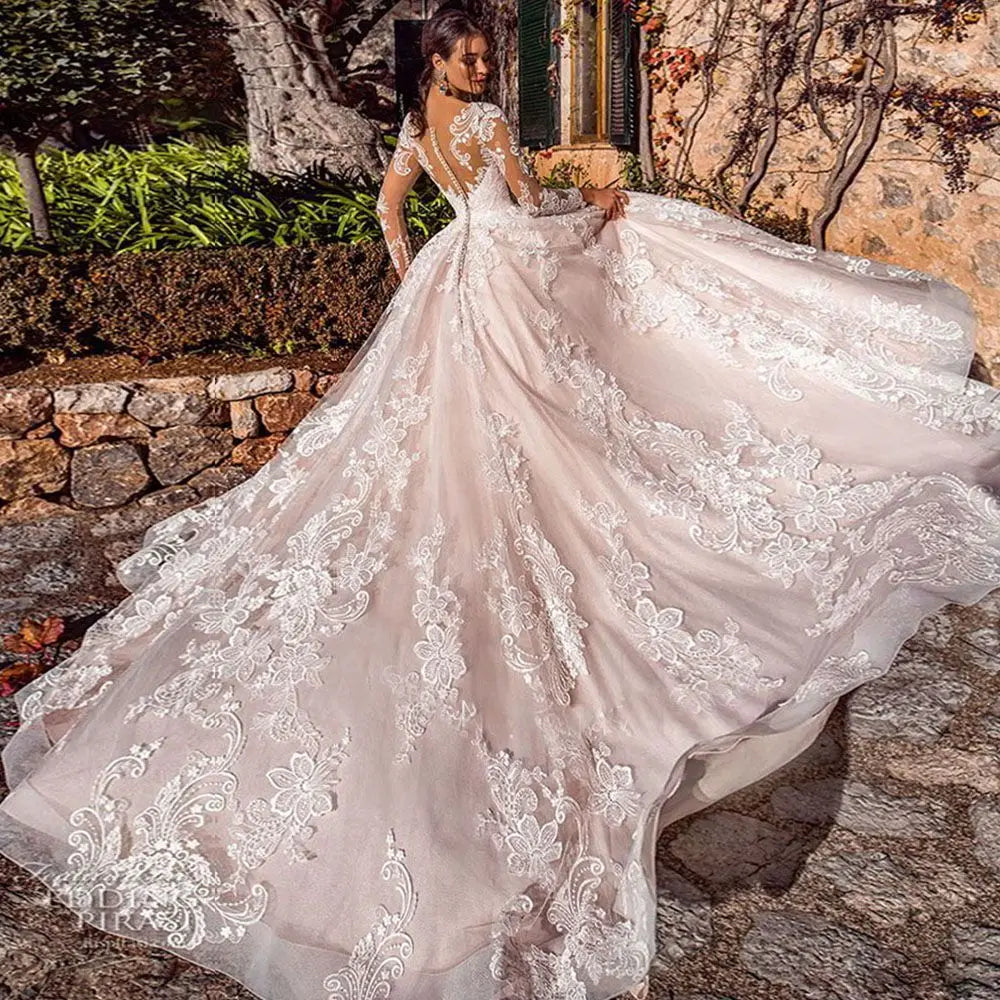 Luxury Ball Gown Vestidos De Novia Appliques Vestido De Noiva Long Sleeve Wedding Dresses Lace Robe De Mariée