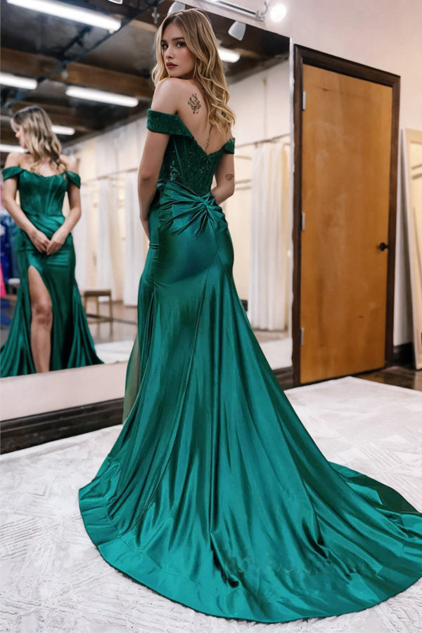 The Mermaid Off Shoulder Satin Lace Long Prom Dress offers an elegant and sophisticated look for your formal occasion. Streamlined and modern. this eye-catching. mermaid-style dress has a satin finish and is available in green. blue. and other shades. Perfectly finished with lace detailing. you'll make a stunning statement at your special event.