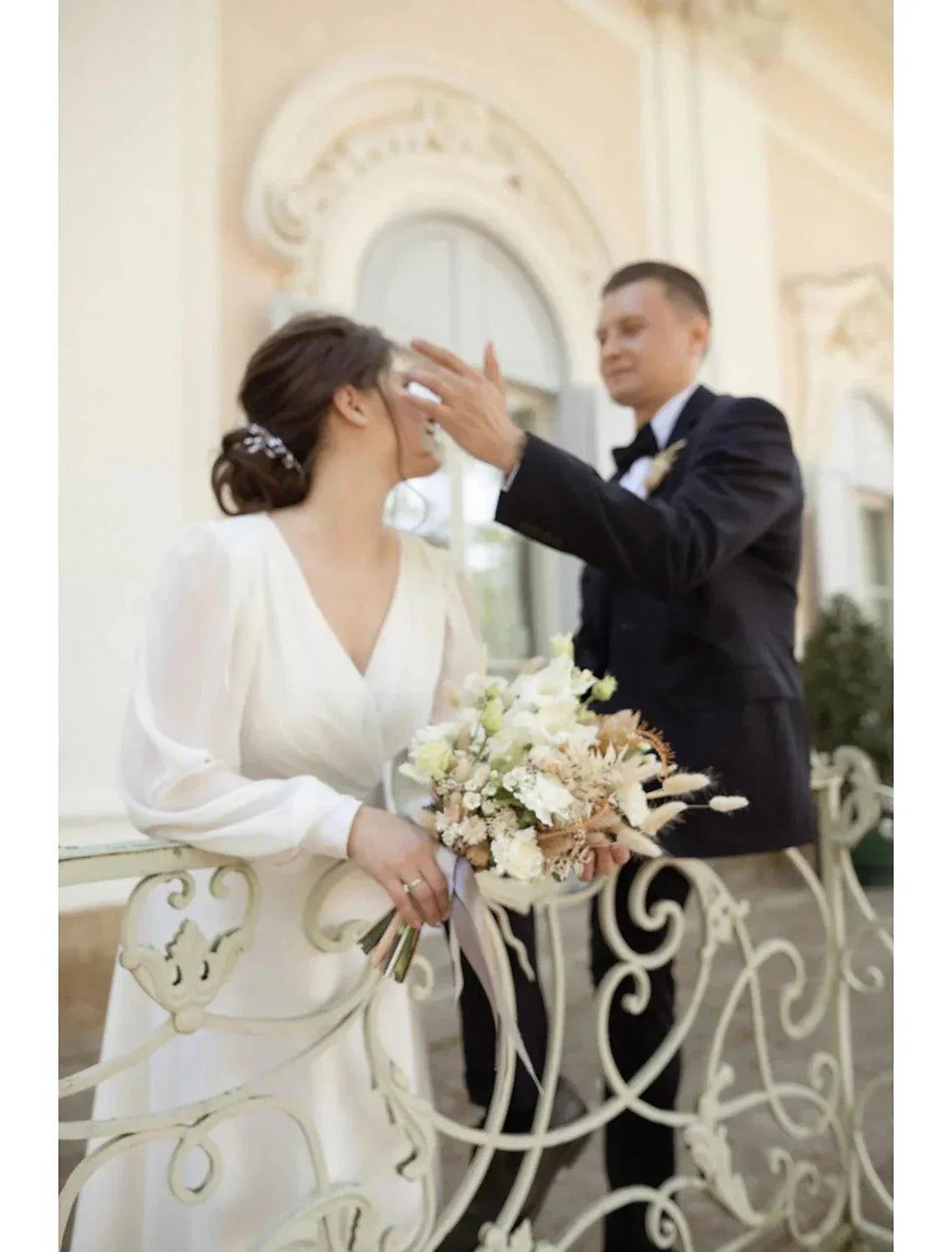 Reception Little White Dresses Wedding Dresses A-Line V Neck Long Sleeve Ankle Length Chiffon Bridal Gowns With Solid Color