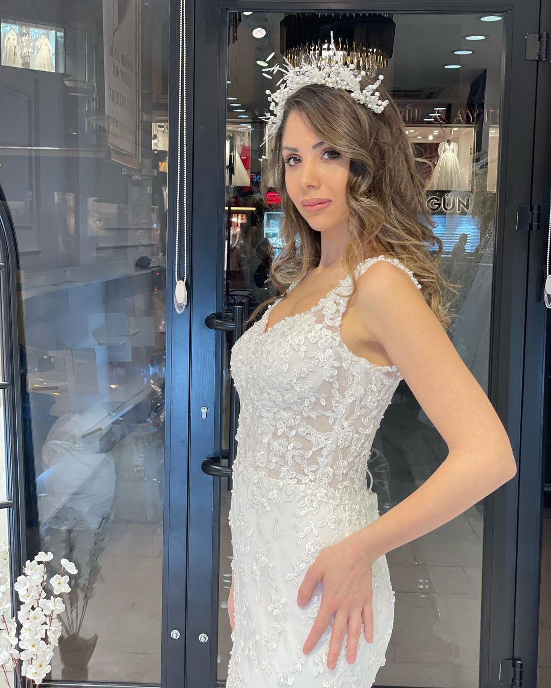 This stunning Sexy Floor Length Sweetheart Traps Sleeveless Mermaid Wedding Dress with Court Train exudes elegance and sophistication. Its court train with mermaid silhouette provides a classic and timeless look. Perfect for your special day. this dress will make you feel beautiful and confident.