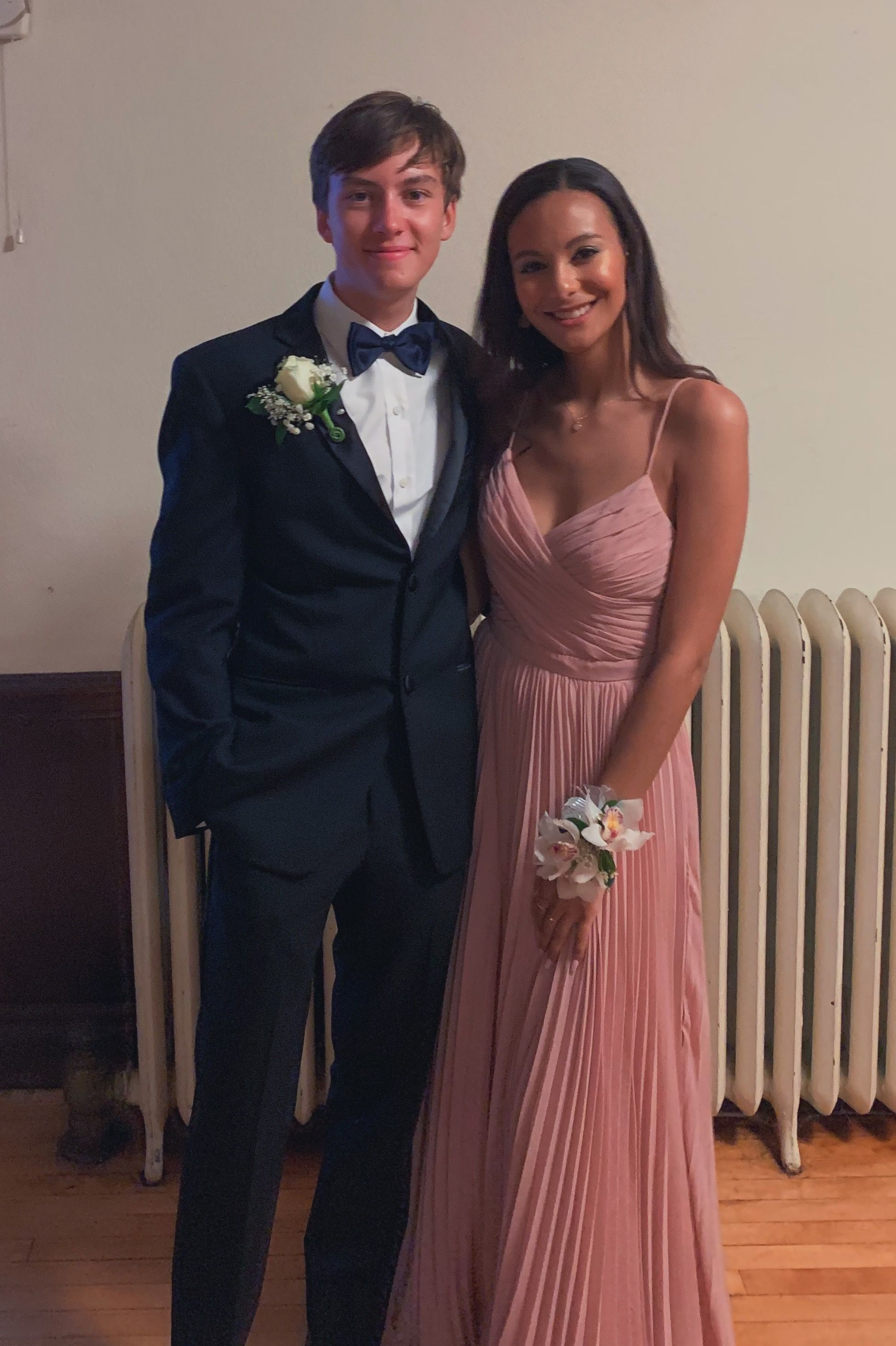 Hold the measuring tape at your hollow while a friend pulls it down to the length you want your dress.