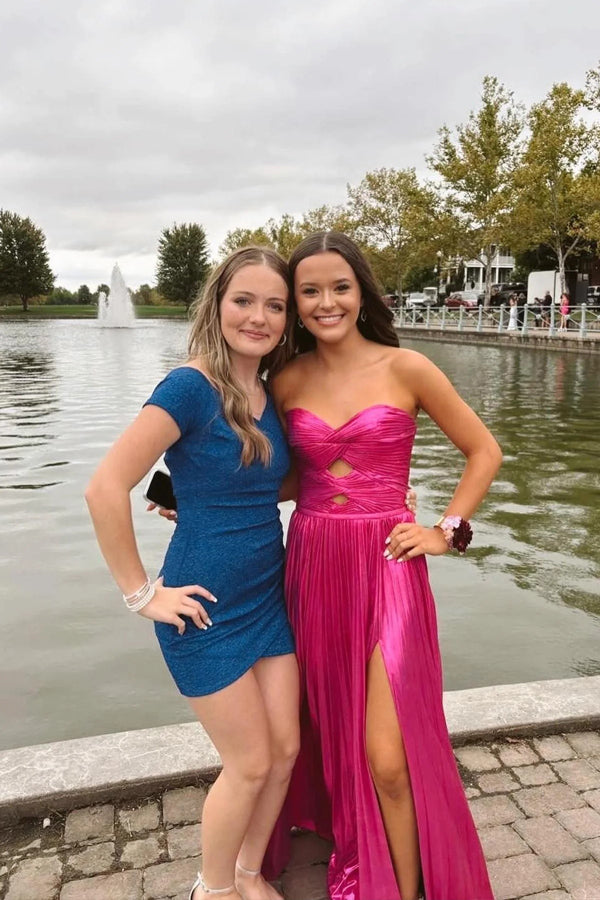 Sweetheart Metallic Pleated Emerald Green Long Prom Dress PSK591
