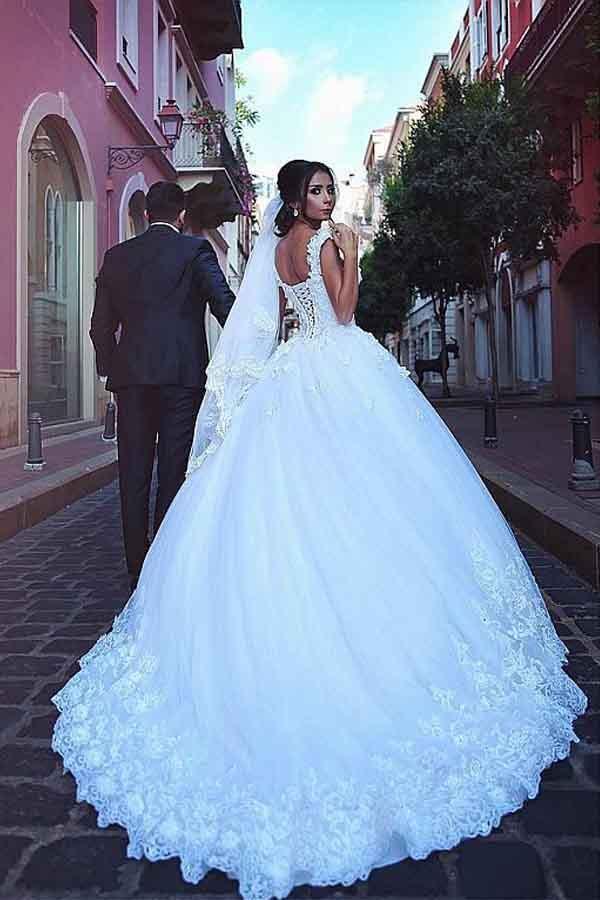 Exude sophisticated elegance with this beautiful tulle V-neck neckline ball gown wedding dress from WD282. Featuring intricate lace appliques. it is the perfect balance between timeless and modern. The full skirt creates a stunning silhouette for any special day.