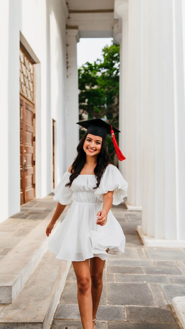 Hold the measuring tape at your hollow while a friend pulls it down to the length you want your dress.